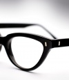 The Cutler and Gross 1013 is a timeless cat-eye design. Its thick and chunky acetate and vintage rectangular pins give this model a very nostalgic 50/60’s feel. It is handmade in Italian acetate and hand polished with hand drilled riveted hinges.