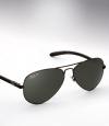Strong and Light. The RB 8307 from Ray Ban's Tech division and part of their Carbon Fibre collection, is composed of carbon fiber and a resin composite which creates a lightweight, strong, flexible, and resilient material. The iconic aviator style frame is paired with carbon fiber temples which feature rubber temple tips for added comfort and non-slip grip.